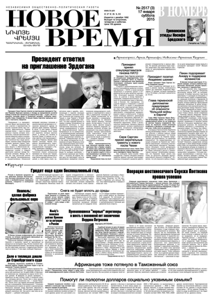 Общественно- политическая газета “Новое Время” была создана в 1992-м году и за 20 лет своего существования сумела заслужить среди армянских читателей право называться лучшей русскоязычной газетой в РА. Помимо сугубо политических тем издание обращается также к вопросам социальным, научным, культурным. Внимание уделяется и проблемам армянской диаспоры…