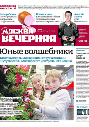 «Вечерняя Москва» — ежедневная российская вечерняя газета, старейшее из вечерних изданий в России, учрежденное в 1923 году. Выходит пять дней в неделю, кроме субботы и воскресенья. Отличается тем, что рассказывает о событиях еще не завершившегося дня. Оперативно освещает хронику и особенности жизни Москвы, охватывает все слои общества и большинство профессиональных и возрастных групп читателей.Издание представлено тремя выпусками – утренним ежедневным, вечерним (выходит три раза в неделю), еженедельным (выходит по четвергам).