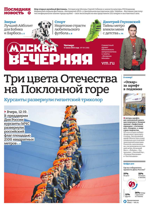 «Вечерняя Москва» — ежедневная российская вечерняя газета, старейшее из вечерних изданий в России, учрежденное в 1923 году. Выходит пять дней в неделю, кроме субботы и воскресенья. Отличается тем, что рассказывает о событиях еще не завершившегося дня. Оперативно освещает хронику и особенности жизни Москвы, охватывает все слои общества и большинство профессиональных и возрастных групп читателей.Издание представлено тремя выпусками – утренним ежедневным, вечерним (выходит три раза в неделю), еженедельным (выходит по четвергам).