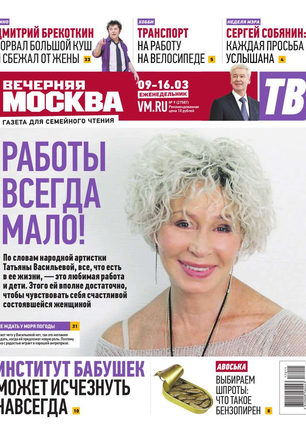 Еженедельный выпуск «Вечерней Москвы» — это значимые события недели, афиша города, новости из сферы отдыха и развлечений, телепрограмма с анонсами и комментариями, авторские колонки журналистов и авторитетные мнения экспертов, детская страничка, специальная рубрика «Золушка», интересные репортажи о необычных судьбах московских жителей, постоянные конкурсы и викторины.