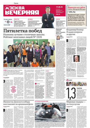 «Вечерняя Москва» — ежедневная российская вечерняя газета, старейшее из вечерних изданий в России, учрежденное в 1923 году. Выходит пять дней в неделю, кроме субботы и воскресенья. Отличается тем, что рассказывает о событиях еще не завершившегося дня. Оперативно освещает хронику и особенности жизни Москвы, охватывает все слои общества и большинство профессиональных и возрастных групп читателей.Издание представлено тремя выпусками – утренним ежедневным, вечерним (выходит три раза в неделю), еженедельным (выходит по четвергам).