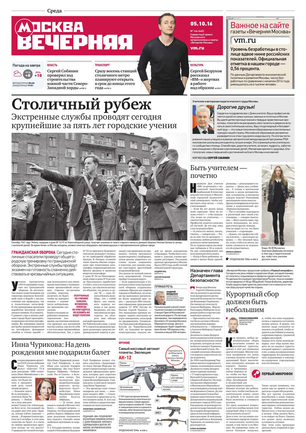 «Вечерняя Москва» — ежедневная российская вечерняя газета, старейшее из вечерних изданий в России, учрежденное в 1923 году. Выходит пять дней в неделю, кроме субботы и воскресенья. Отличается тем, что рассказывает о событиях еще не завершившегося дня. Оперативно освещает хронику и особенности жизни Москвы, охватывает все слои общества и большинство профессиональных и возрастных групп читателей.Издание представлено тремя выпусками – утренним ежедневным, вечерним (выходит три раза в неделю), еженедельным (выходит по четвергам).